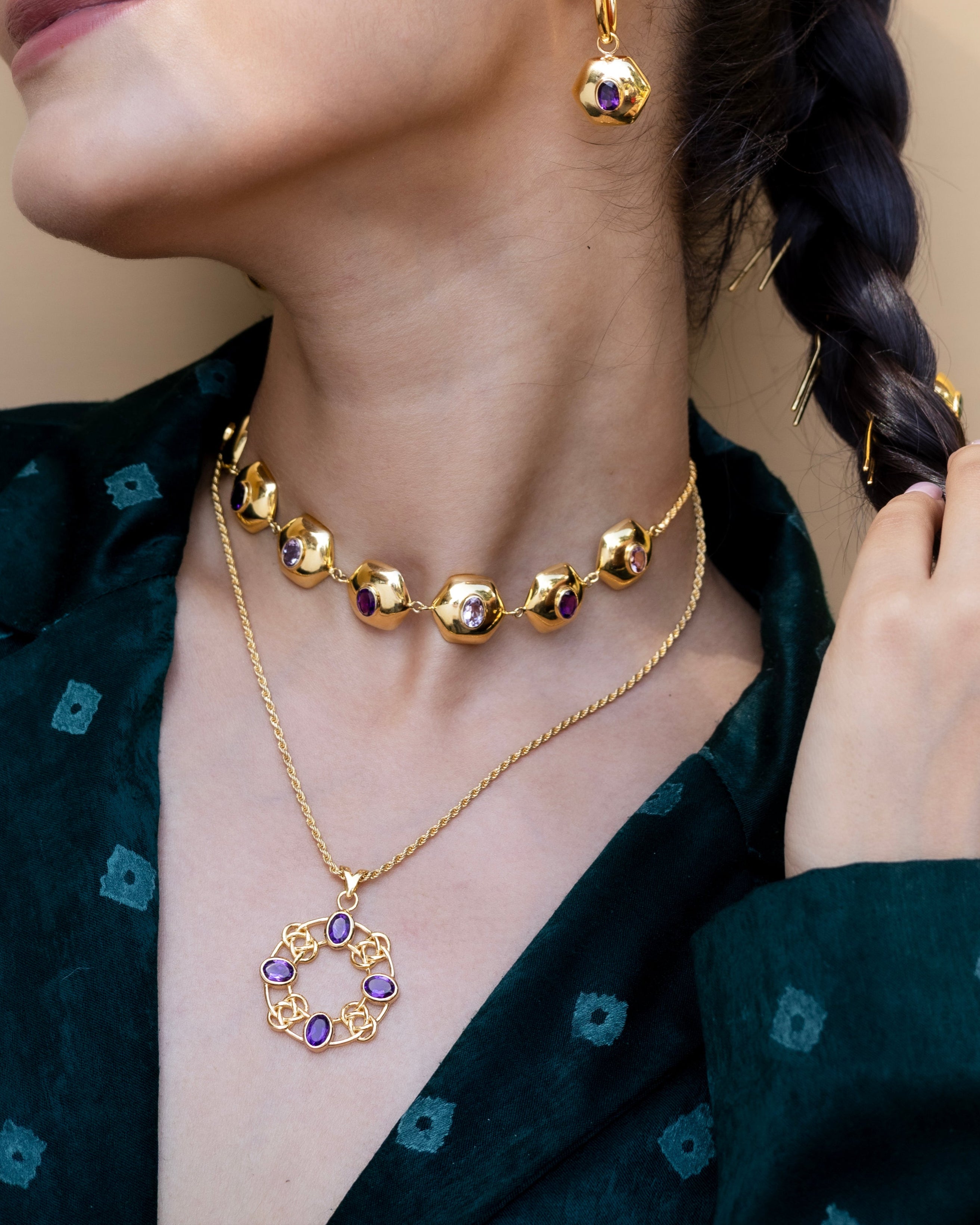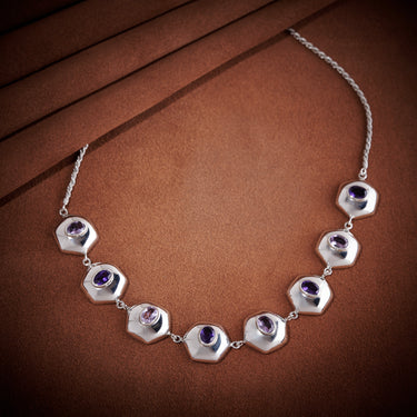 Style Tip: Wear it against neutrals to let the Amethyst tones pop, or layer with longer silver chains for contrast and edge.