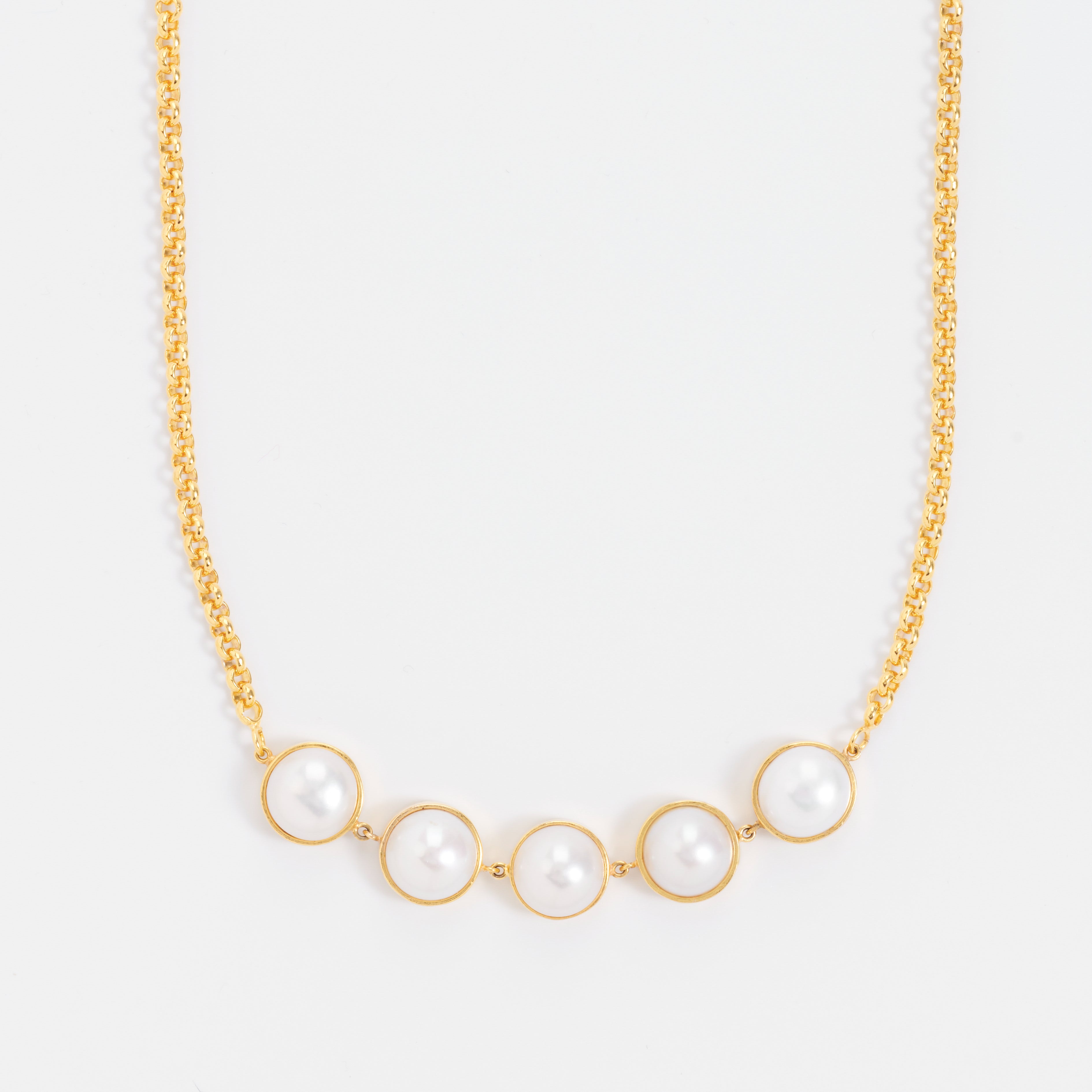 Timeless yet contemporary, this choker necklace is crafted in 925 sterling silver with an 18K gold finish and set with lustrous freshwater pearls. Each pearl is carefully handpicked for its natural sheen and perfectly balanced to create a minimal yet striking silhouette. A versatile piece that moves effortlessly from daytime sophistication to evening elegance.
