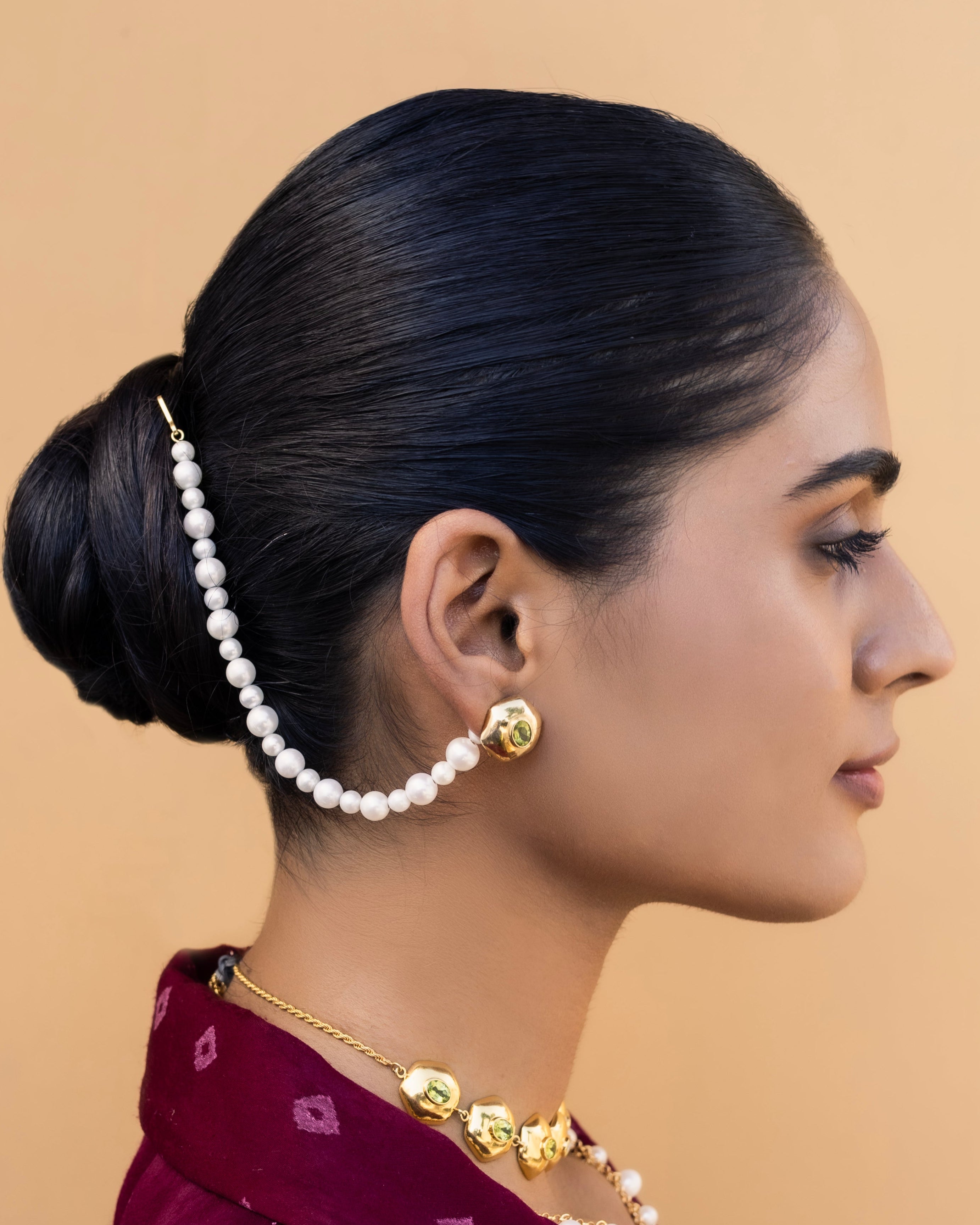 Designed to be worn with any of your favorite stud earrings, it transforms simple studs into a statement look — making it a versatile accessory for both festive and everyday styling.