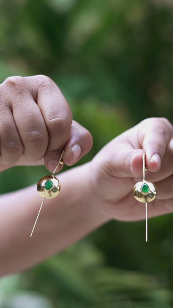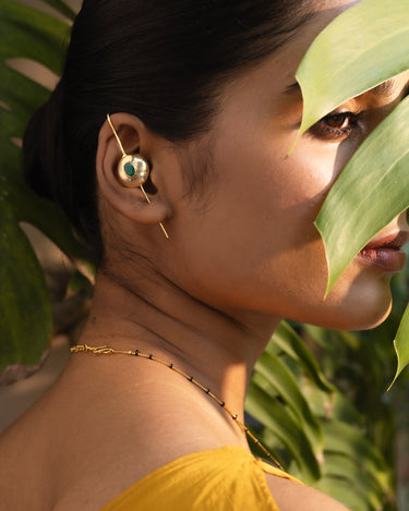 Crafted in 925 sterling silver with a radiant 18K gold plating, these round earcuffs are a modern re-imagination of timeless elegance. At the center rests a striking green onyx, known as the stone of strength and protection, bringing depth and balance to the design. Sculptural yet minimal, they are perfect for elevating any outfit with a touch of luxury.
