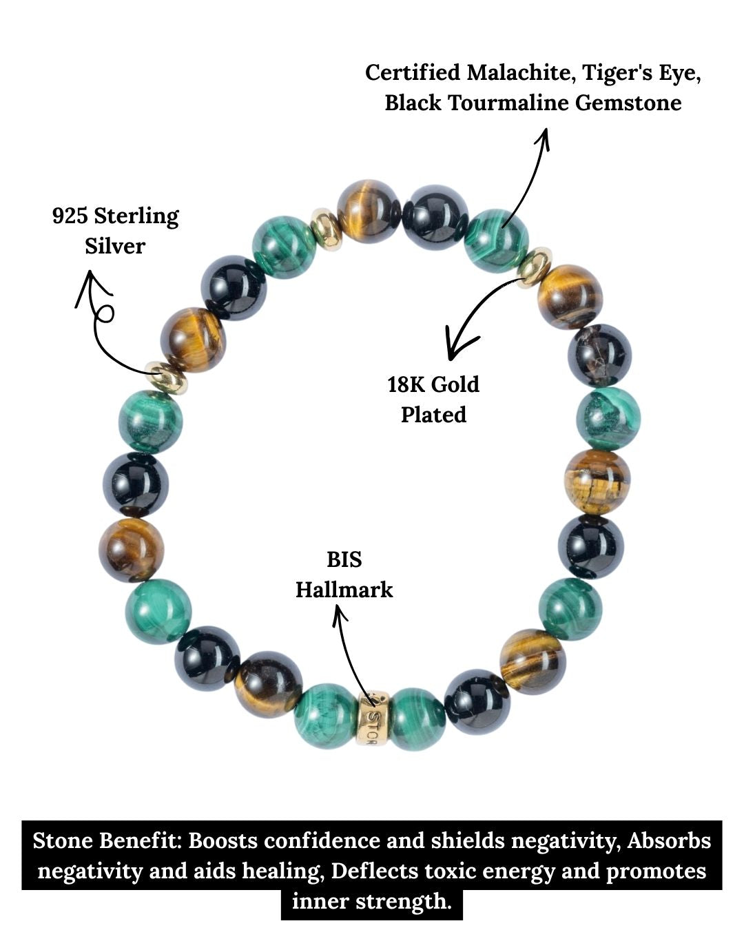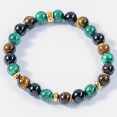 Travel Protection Bracelet- Malachite, Tiger's Eye, Black Tourmaline Natural Stones