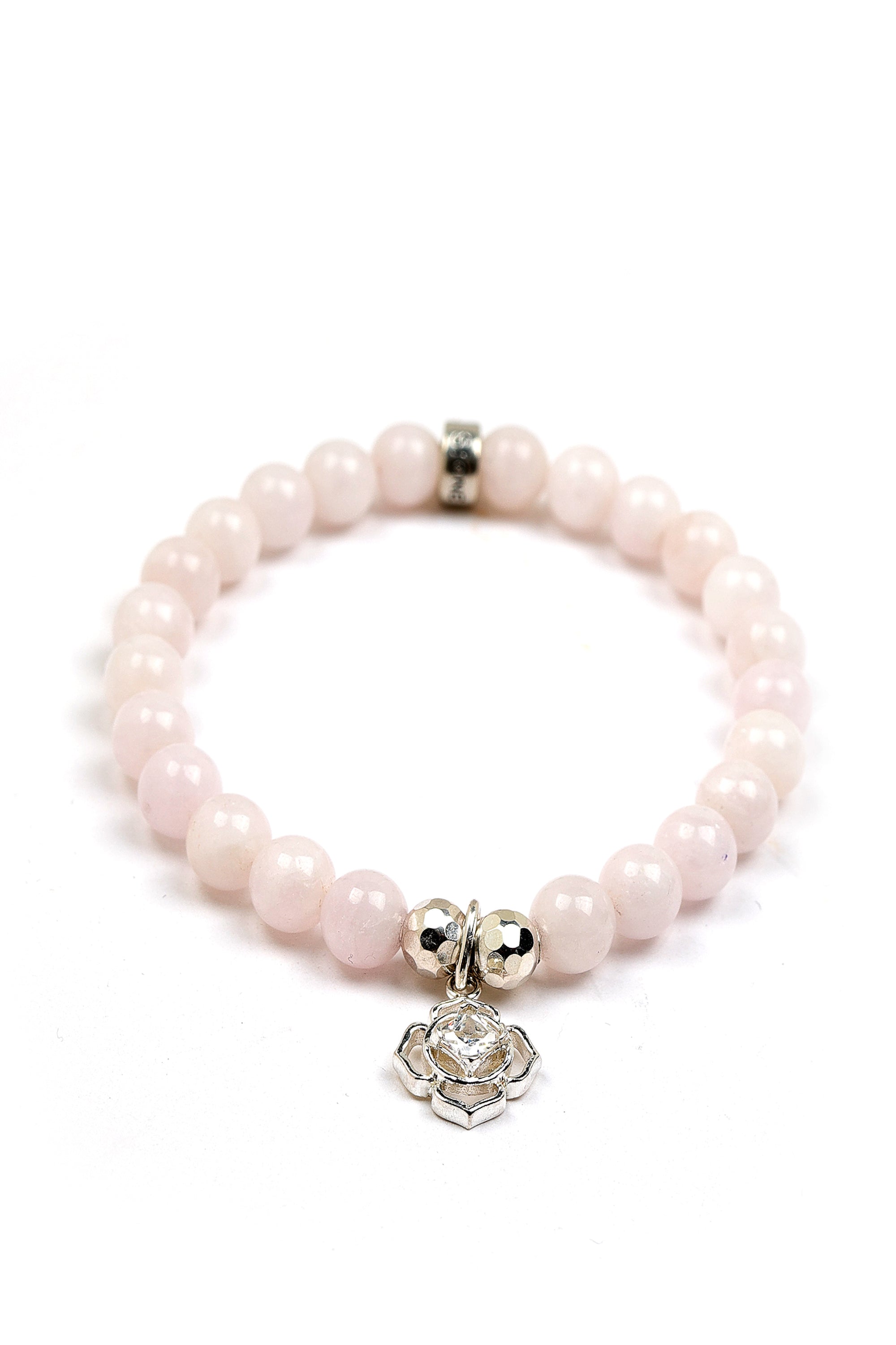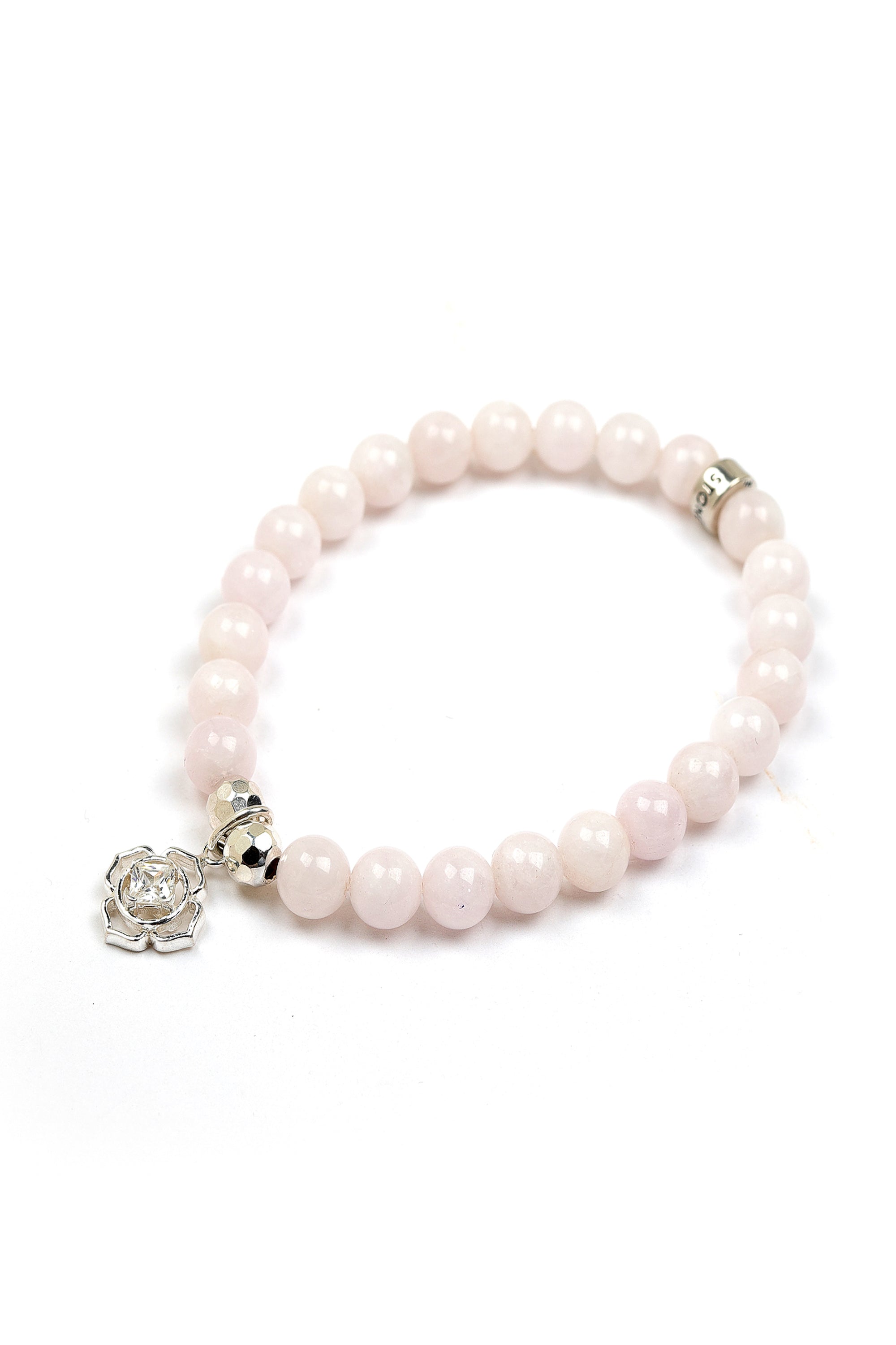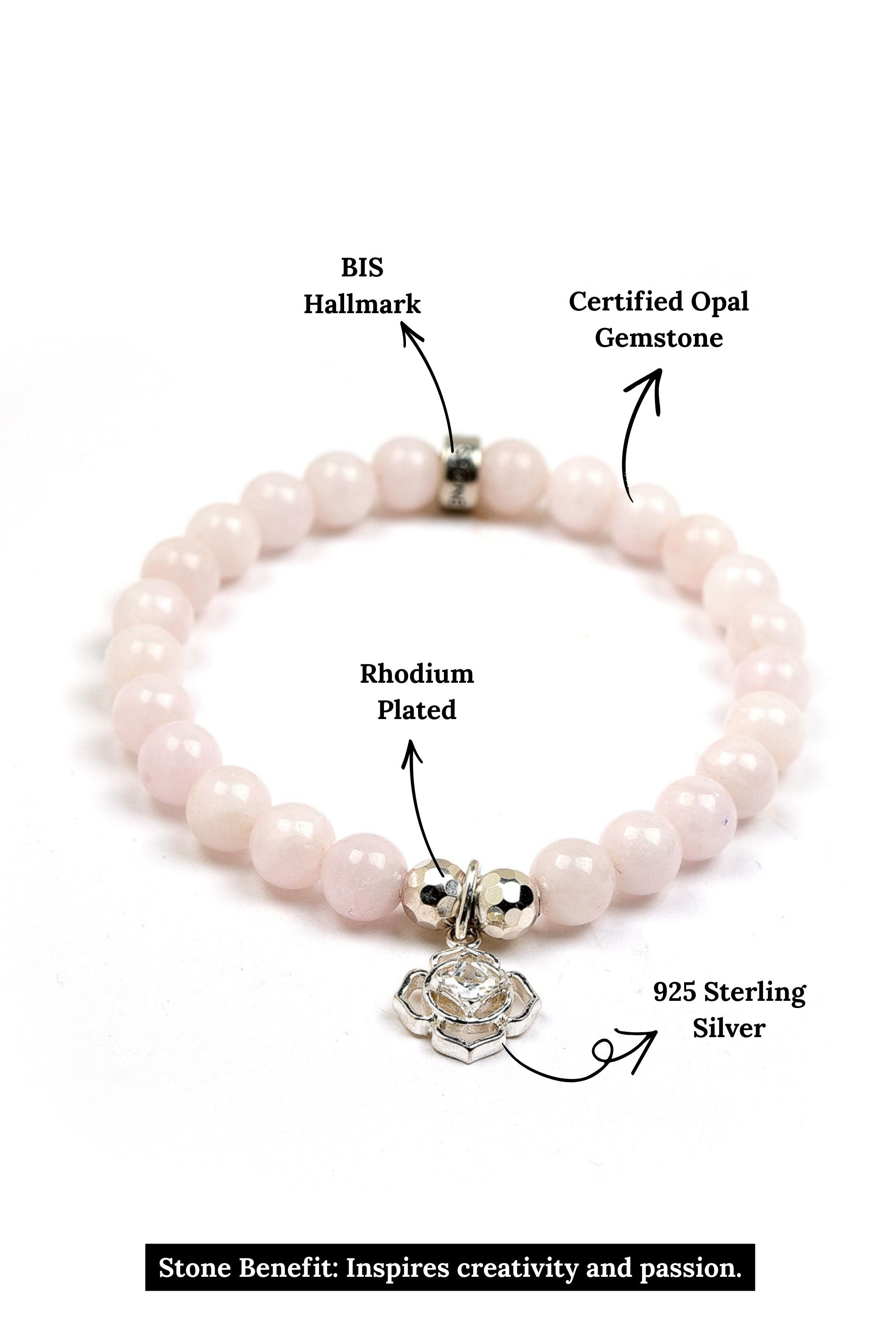 This bracelet features Opal gemstones, a flower charm with a sparkling center, and our signature logo bead, all crafted in 925 Sterling Silver. It seamlessly blends sophistication with everyday wear. Strung on a durable stretch cord, this bracelet is perfect for stacking or wearing solo as a timeless accessory.
