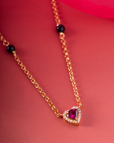 Pink Rhodolite Heart Mangalsutra Necklace