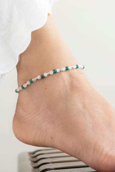 Crafted with 925 sterling silver as the base, this anklet brings together the soft blush of rose quartz and the rich green hue of onyx. Finished with cool-toned rhodium-plated spacers, it’s a refreshing contrast of calm and strength—made for everyday ease with a touch of gentle power.