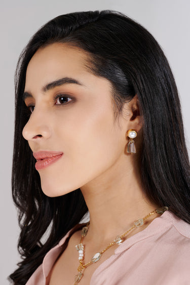 Graceful and refined, the Green Amethyst Pearl Drop Earrings feature a luminous freshwater pearl bezel-set in 925 sterling silver with 18K gold plating, paired with a faceted Green Amethyst drop that sways with soft elegance. The combination of serene greens and classic pearl makes this pair perfect for both intimate gatherings and elevated everyday wear.A timeless silhouette reimagined with calm color and artisanal detail.