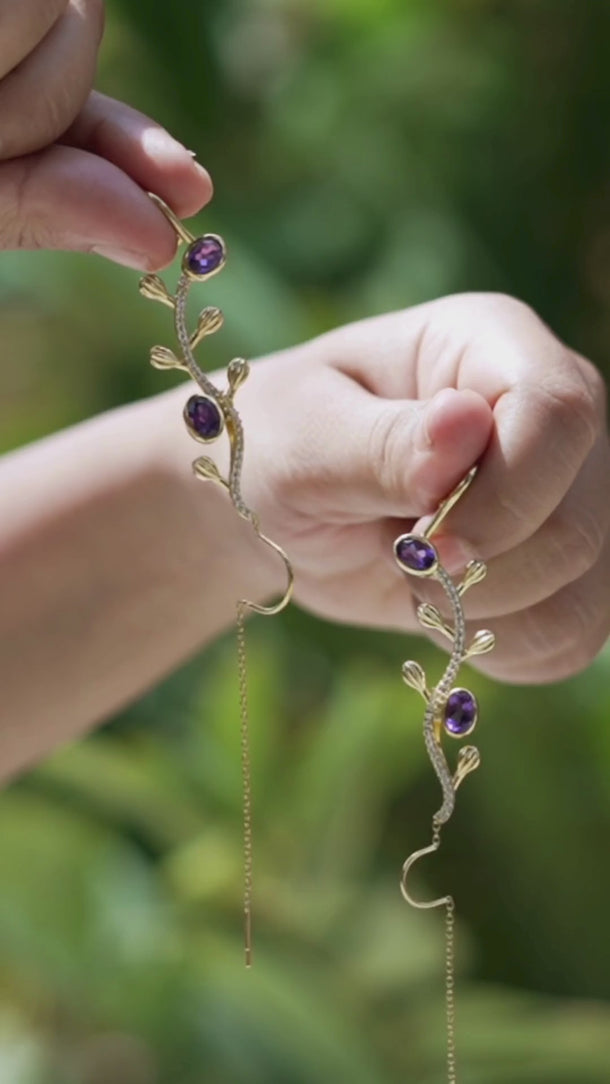Elevate your ear game with our handcrafted earcuff, designed in 925 sterling silver with an 18K gold finish. Featuring vibrant peridot gemstones delicately set along a vine-inspired design, this cuff wraps the ear with elegance and ease.