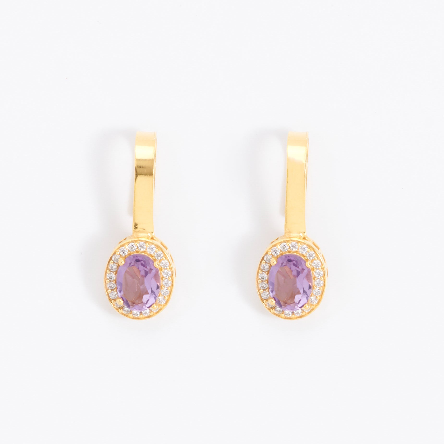These ear cuffs feature soft violet amethyst stones framed by a halo of CZ accents, set in 925 sterling silver with 18K gold plating. Known for its calming and clarifying energy, amethyst brings a touch of serenity and poise to your everyday style.