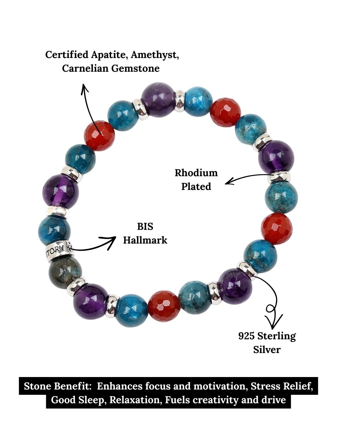 Weight Management & Fitness Bracelet- Apatite, Amethyst, Carnelian Natural Stones