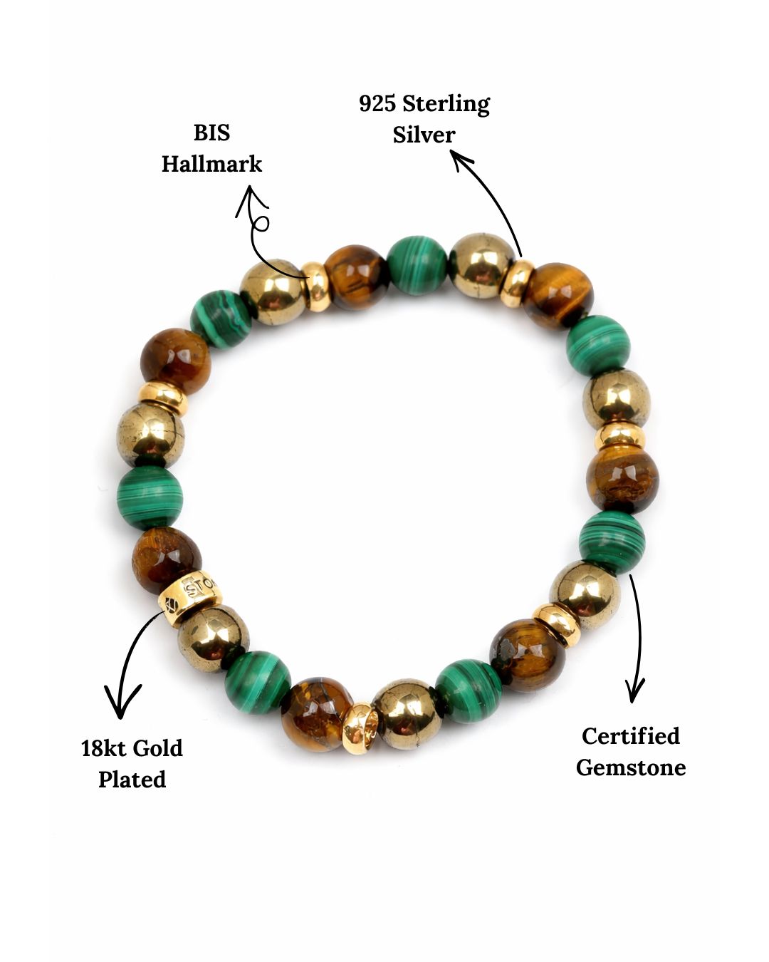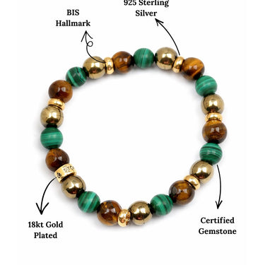Wealth and Abundance Bracelet -Malachite, Pyrite & Tiger's Eye Natural Stones