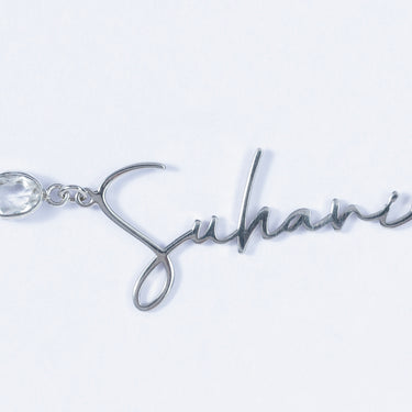 Add a personal touch to your jewellery collection with our Custom Made-for-You Name Necklaces, designed to be unisex and made from 925 Sterling Silver. Each necklace is plated with 18K gold or rhodium, giving it a beautiful, long-lasting finish. A stunning clear quartz stone is added for a bit of extra sparkle, making it the perfect blend of charm and style.