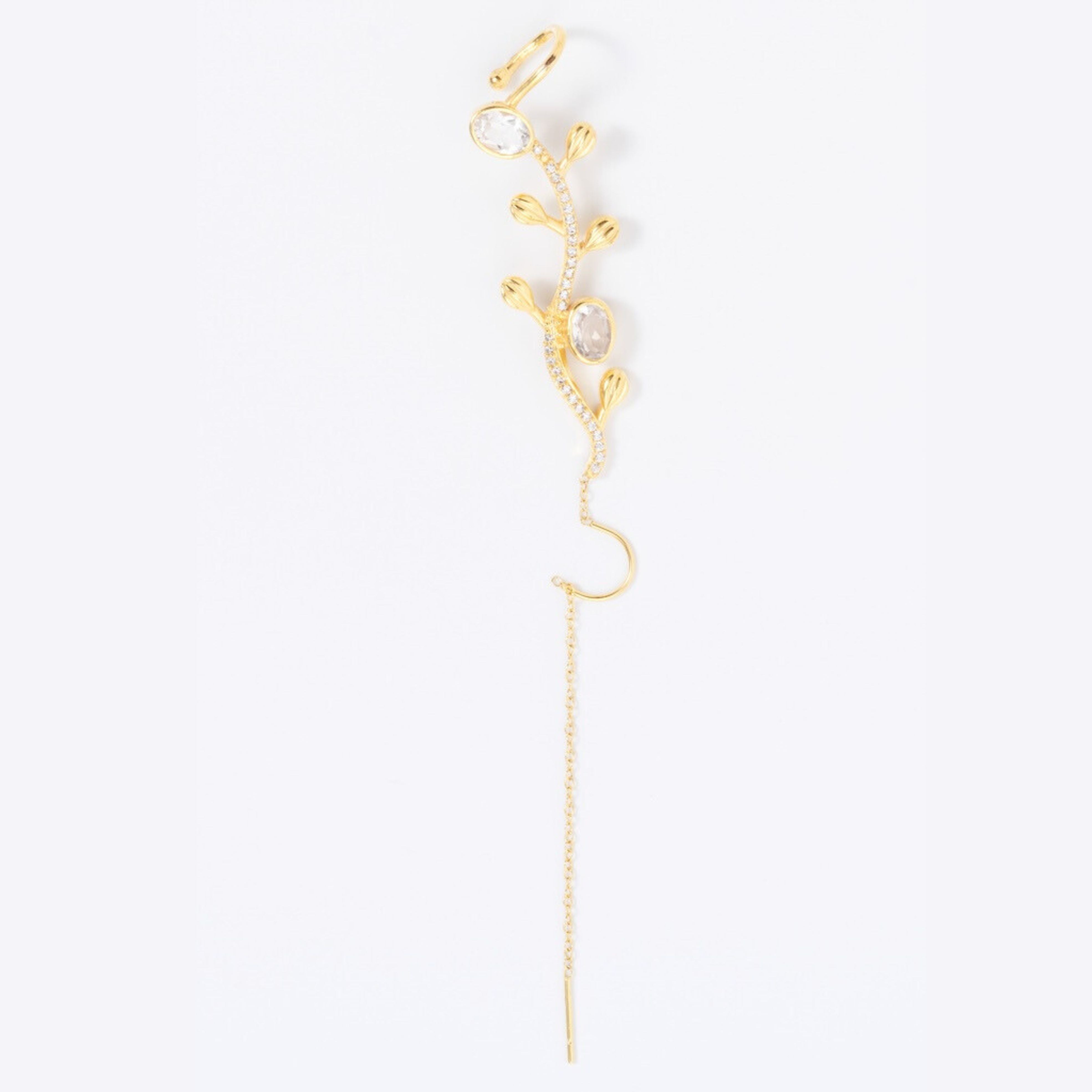 This contemporary ear cuff, crafted in 925 sterling silver and finished in matte 18K gold, takes its form from organic vine-like curves. Accented with clear quartz, it creates a layered look that is modern and effortless.