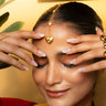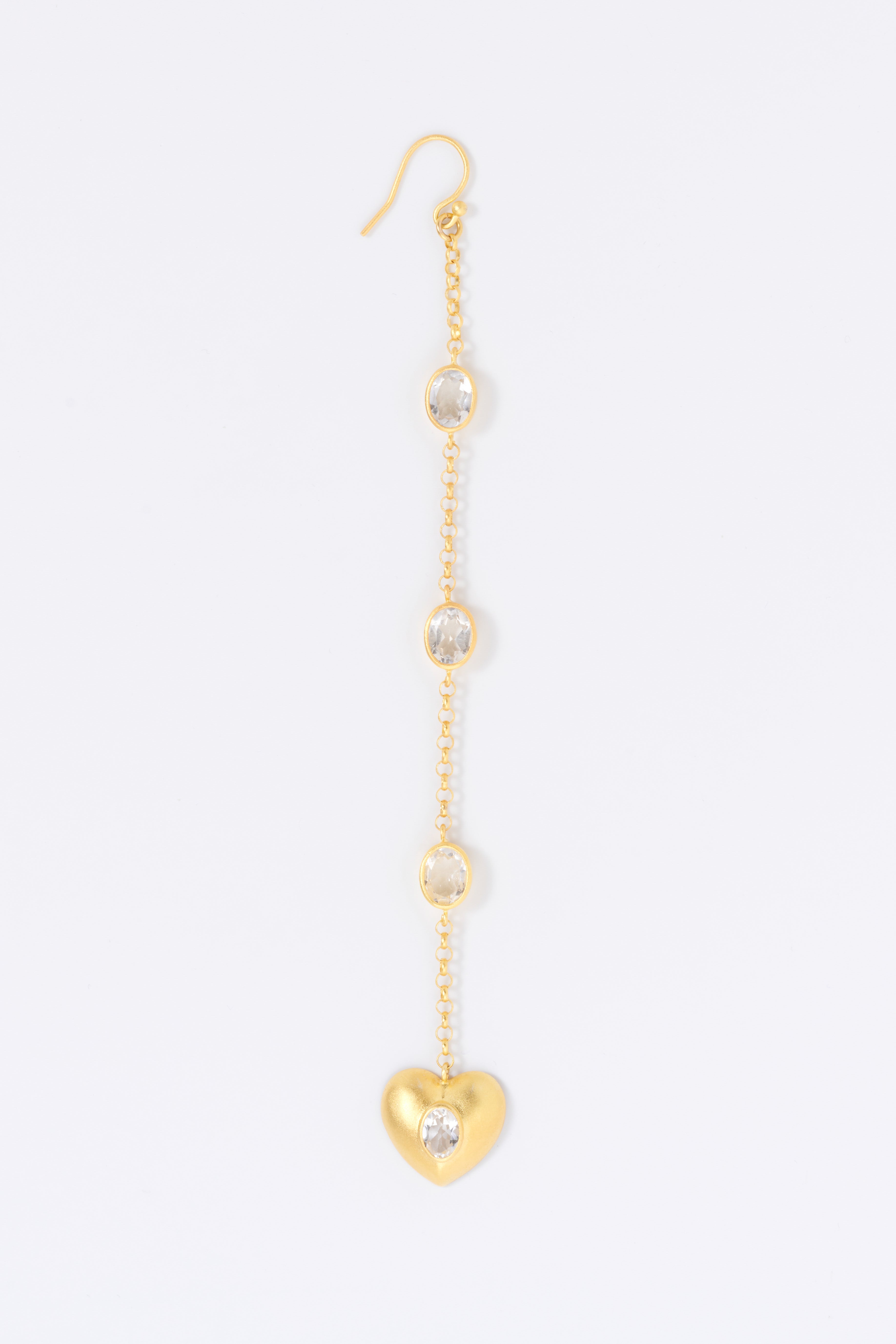 Crafted in 925 sterling silver with a refined 18K matte gold finish, this maangtikka features a delicate chain set with bezel-cut Clear Quartz stones. The design is anchored by a sculpted heart motif, also accented with Clear Quartz, creating a subtle yet striking focal point. Known as a stone of clarity and amplification, Clear Quartz enhances the elegance of this piece with its natural brilliance. A modern interpretation of traditional adornment, this maangtikka is versatile enough to pair with festive attire as well as contemporary looks.